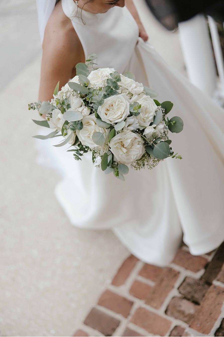 Green is our favorite color, and we knew that we wanted our colors to be green with white. I love natural colors, and we really leaned into that with our florals. I knew I wanted mostly baby’s breath with a little bit of greenery mixed in. For the décor, again, we wanted simple and classic; we didn’t want too much. Some of it was a matter of personal style, and some of it was about saving money where we could.
