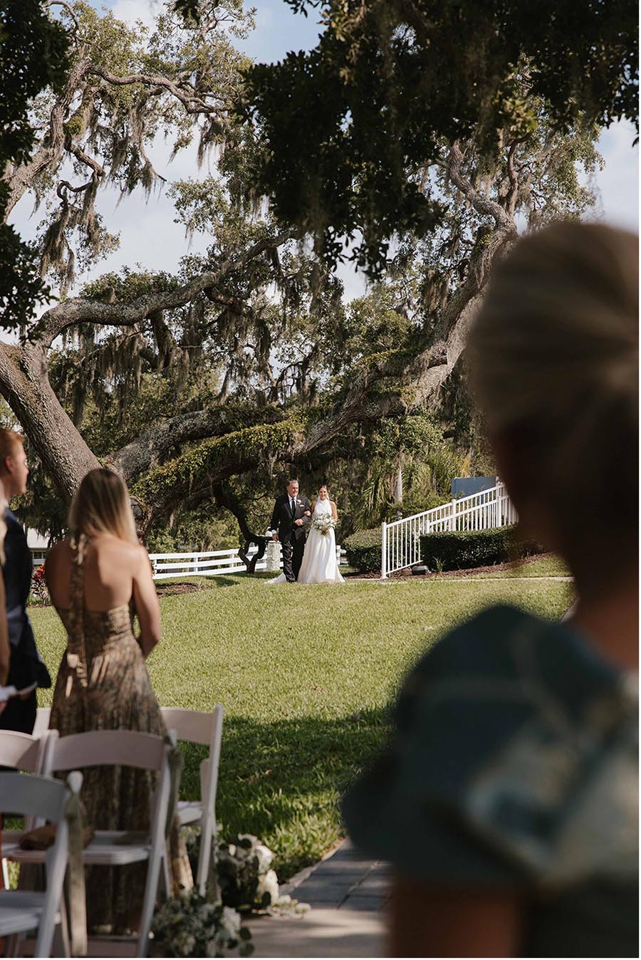 From a chance meeting at a UCF football tailgate to a heartfelt proposal on her parents’ dock, Ashley and Ben’s love story is filled with serendipity, laughter, and devotion. Their wedding at The Highland Manor was a picture-perfect reflection of their classic style, complete with lush greenery, timeless details, and unforgettable personal touches. What began beneath the shade of a century-old oak tree and ended inside a historic mansion, their day was truly everything Ashley and Ben had dreamed of, and more.